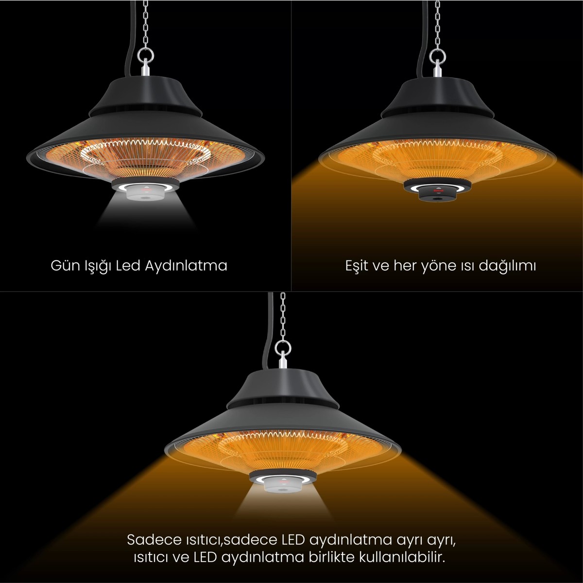Ürün çok kaliteli . Montajı çok kolay. Balkon için aldım. Çok güzel ısıtıyor. Led aydınlatması hafif rahatsız etmeyen ortama ambiyans katıyor.
