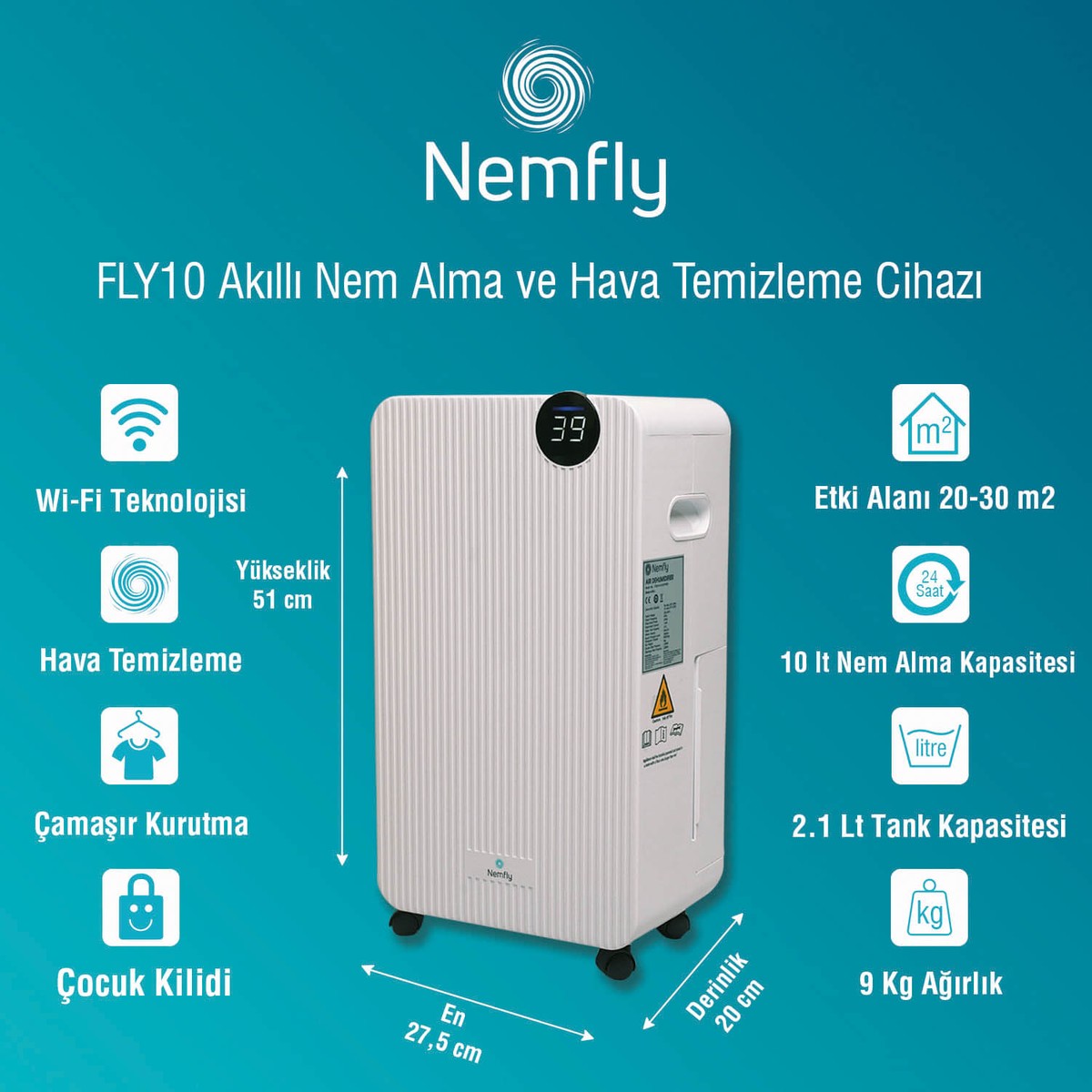 FLY10 Akıllı ( Wi-Fi ) Ev Tipi Nem Alma ve Hava Temizleme Cihazı