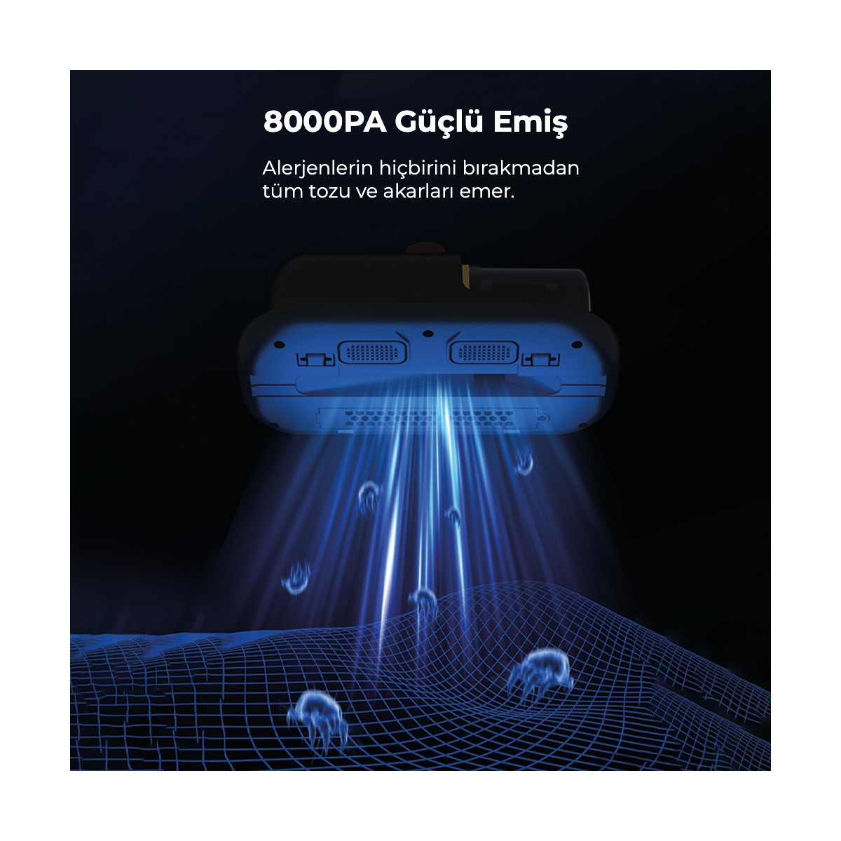 Alerjik ya da temiz bir alan isteyen herkesin elinin altında! Yataklardan ya da diğer nesnelerden bakteri, toz veya akarları etkili bir şekilde temizleyen UV sterilizasyon lambası sayesinde uyku kalitenizi arttırın! Evcil hayvan tüylerinizi artık daha kolay temizleyebilirsiniz. Kablosuz ve UV-C ışınları yardımıyla mikropları toplar. Hızlı ve etkili sterilizasyon için UV-C ultraviyole ışınları ile yüzey tabakasına nüfuz eder.