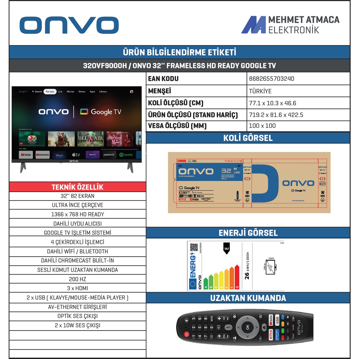 Onvo 32ovf9000h 32’’ 82 Ekran Uydu Alıcılı Hd Ready Google Led Tv