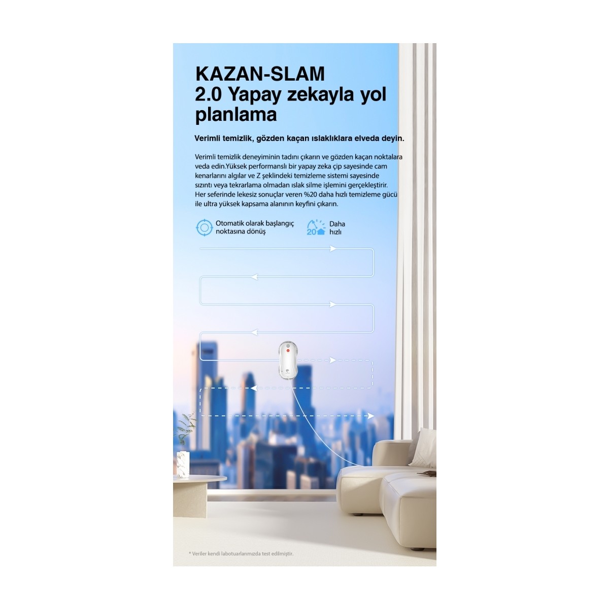 Yüksek performanslı AI çipiyle anında tepki verir, cam kenarlarını hassasiyetle tanır. Gelişmiş sensör dizisi; kulplar, kilitler ve çerçeveler gibi engelleri algılayarak verimli ve kapsamlı temizlik için akıllı manevra yapar.