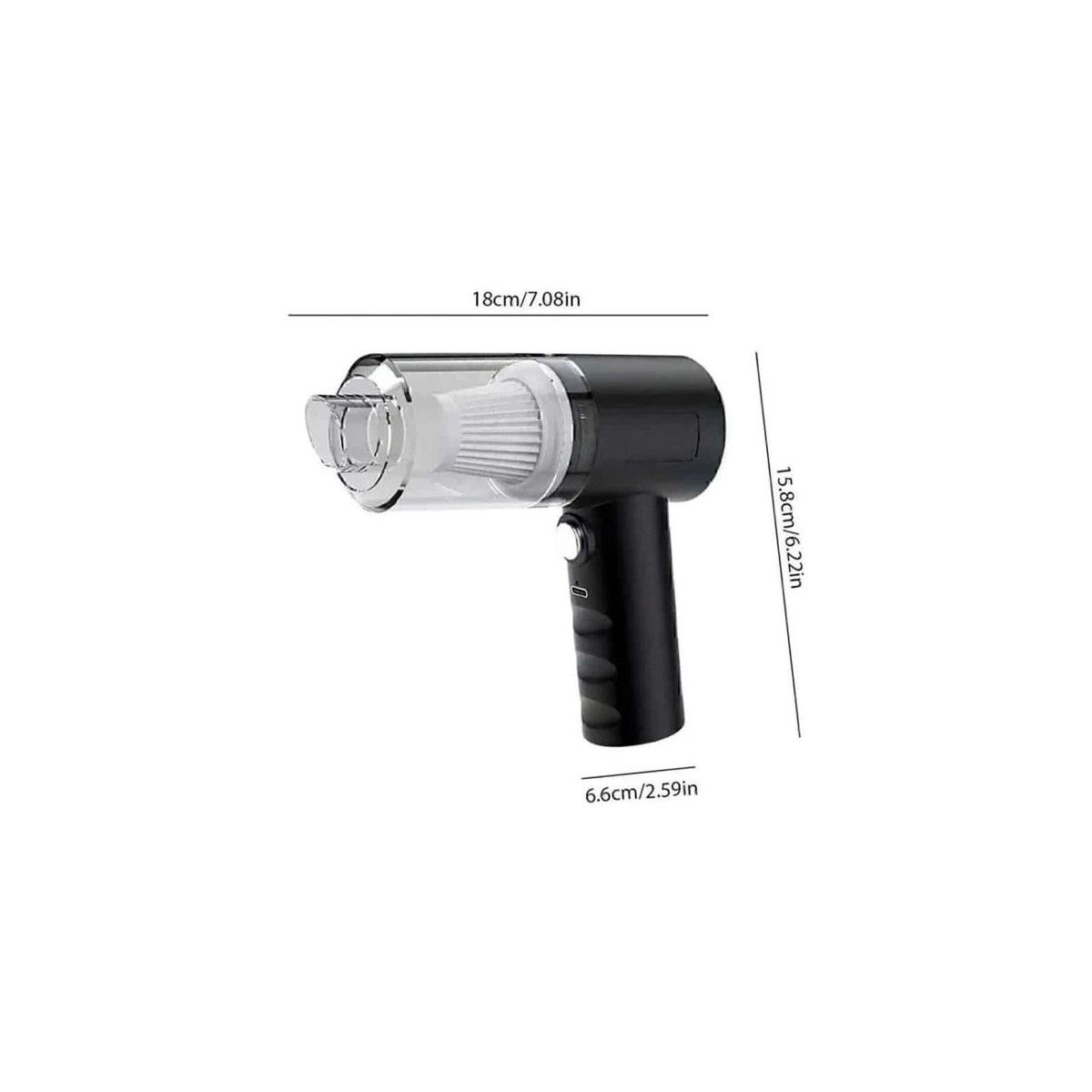 Mini vakumlu araç süpürgesi, kompakt ve şık tasarımıyla araç içi temizlik ihtiyaçlarını pratik şekilde karşılayan çok fonksiyonlu bir üründür. 120W güçlü motoru sayesinde 5500Pa vakum gücü üretir ve bu sayede araç içerisindeki toz, kırıntı, saç teli ve diğer küçük partikülleri zahmetsizce temizler. Katlanabilir sapı, hem kullanım kolaylığı sağlar hem de ürünün taşınmasını ve saklanmasını son derece pratik hale getirir.Şarjlı yapısı sayesinde kablo karmaşasına gerek kalmadan her yerde kullanılabilir; USB üzerinden kolayca şarj edilebilir yapısı da modern kullanıcı ihtiyaçlarına tam uyum sağlar. ABS malzemeden üretilmiş olması, ürüne hem dayanıklılık hem de uzun ömür kazandırır. Yıkanabilir filtresi ise sürdürülebilir temizlik sunarak filtre değişimine ihtiyaç duymadan hijyenik kullanım imkanı sağlar. Araç içi temizlikte pratiklik, güç ve taşınabilirlik arayanlar için bu mini süpürge ideal bir tercihtir.