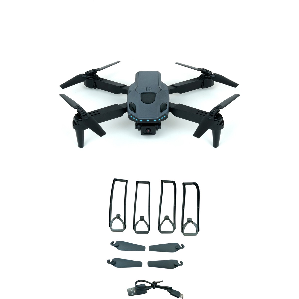 Kutu içeriğinde 1 drone, 1 uzaktan kumanda 4 Yedek pervane, 4 pervane koruyucu, 1 batarya, 1 şarj kablosu, 1 tornavida mevcuttur.