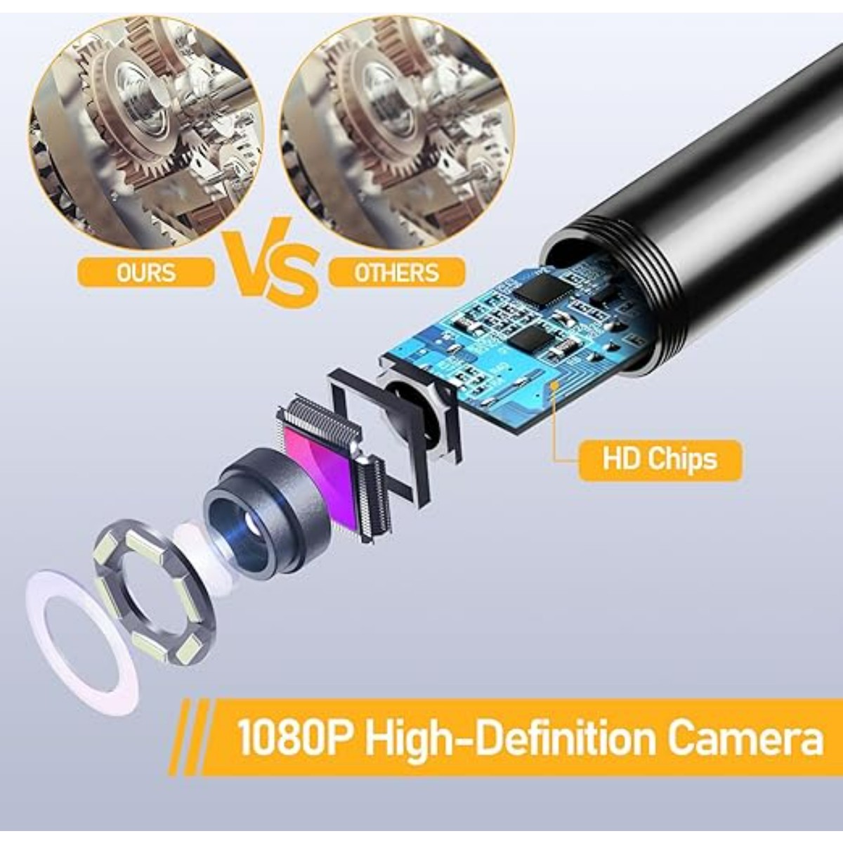 - 1080p HD çözünürlük: Bu endoskopik kamera kompakttır ve 8 mm prob ile taşınabilir ve 8 ayarlanabilir LED kamera karanlık ortamlarda bile net bir görüş sağlar.