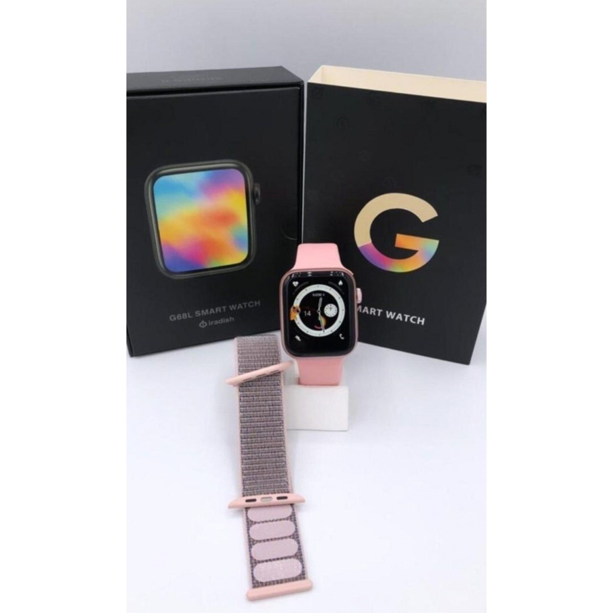 Pazariz G68L 6s Akıllı Saat Yan Tuşlar Aktif Uygulama – Çift Kordon Pembe