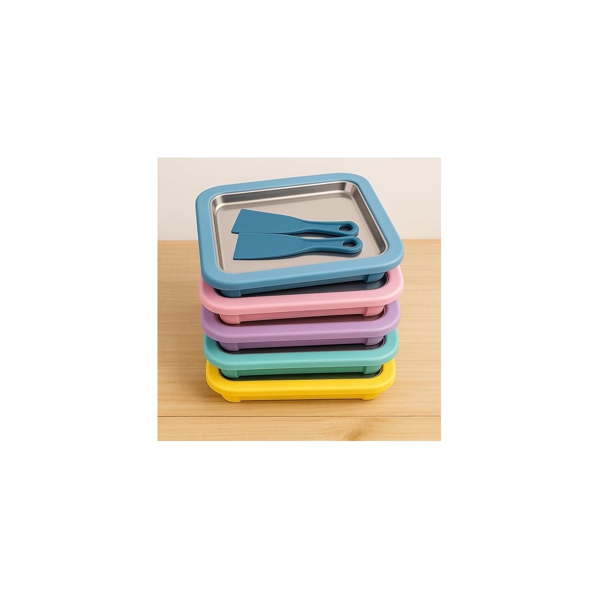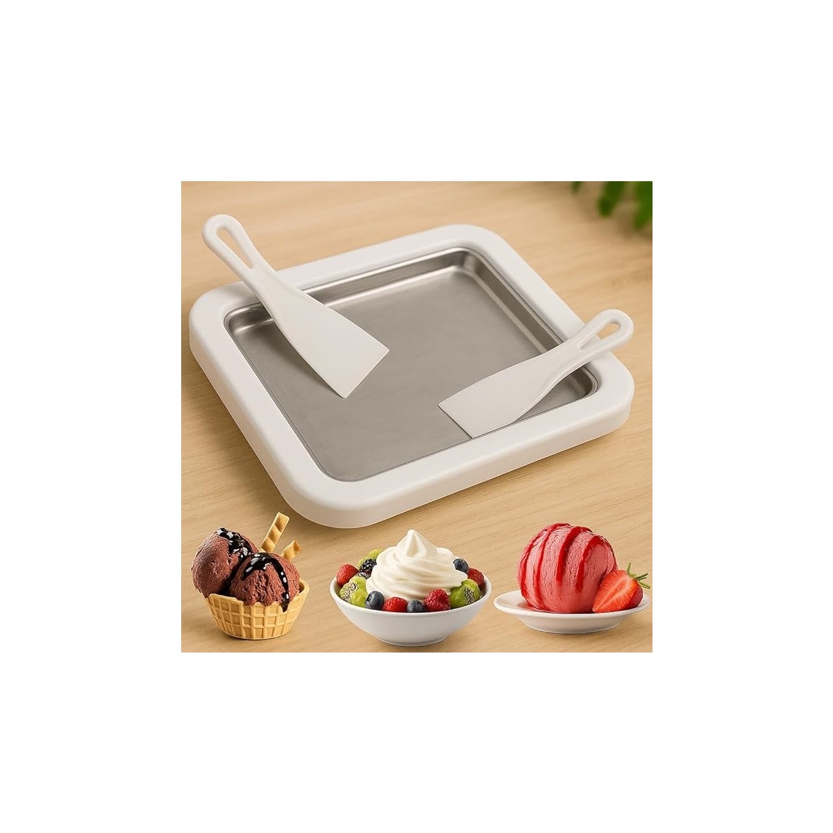 Tipi Dondurma Tavası, Paslanmaz Çelik Yüzeyli, Spatulalı, Rulo Dondurma ve Yoğurt Yapma Tepsisi