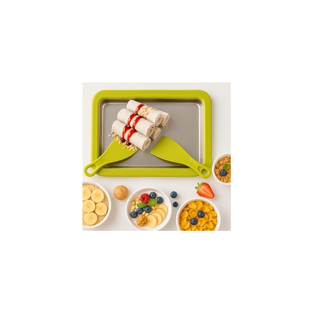 Bu ürün hakkında ✅ Evde Sağlıklı Tatlı Keyfi – Şeker ilavesiz yoğurt, meyve veya çikolata ile kendi doğal dondurmanızı yapın. Hem eğlenceli hem sağlıklı! Donmaz Yüzey Teknolojisi – Ürünü dondurucuda 10 saat bekletin, çıkarır çıkarmaz donmaya başlar. Dakikalar içinde hazır! ⏱️❄️ Rulo Dondurma Hazırlama – Spatulalar yardımıyla karışımı yayarak kolayca rulo dondurma şekli verin. Çocuklar bayılacak! Kolay Temizlik, Pratik Kullanım – Yapışmaz yüzeyi sayesinde elde veya bulaşık makinesinde kolayca temizlenir. Zorlamaz, zaman kazandırır. ✨