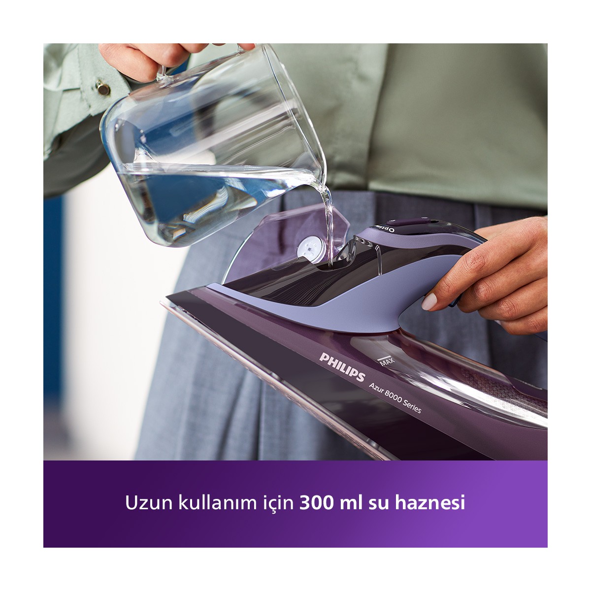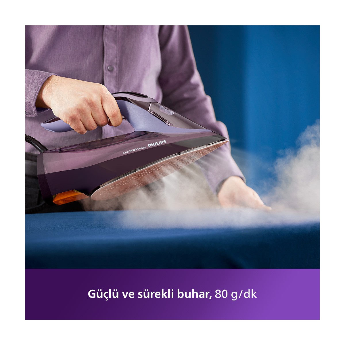 Philips 8000 Serisi Azur Buharlı Ütü, 3000W, SteamGlide Elite Taban, Otomatik Kapanma, 240 g Şok Buhar, Sıfır Yanık Garantisi, DST8021/30