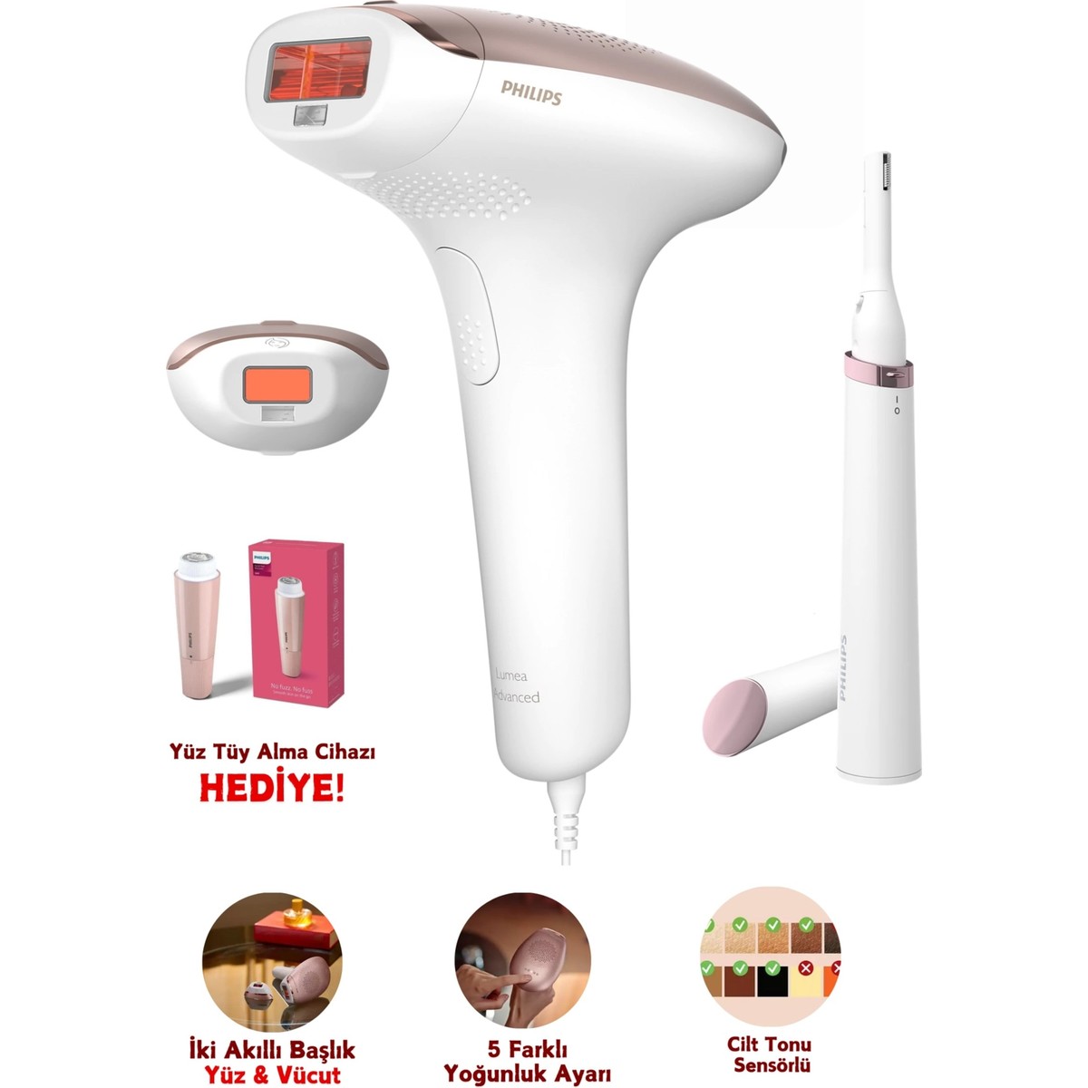 Ipl Lazer Epilasyon Cihazı, 2 Akıllı Başlık (Vücut ve Yüz Başlığı), Cilt Tonu Sensörü, Compact Kalem Düzeltici, Uzun Ömürlü Kullanım+ Tüy Alma Cihazı + Lambader (Onerous)