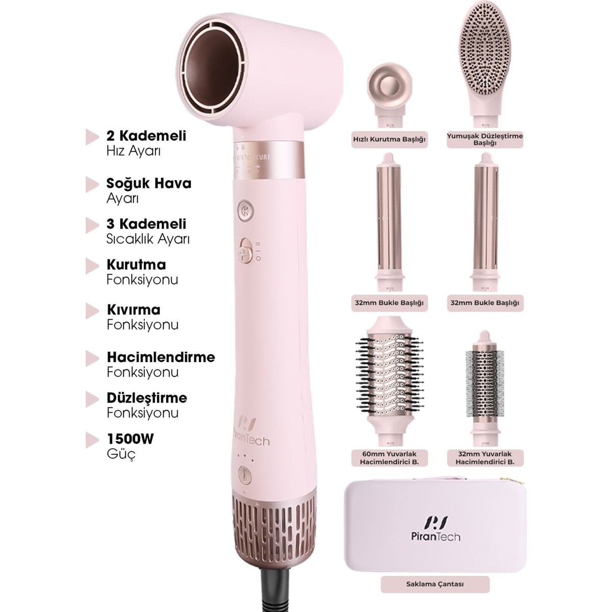 Pirantech KS-611 Style-Airbreeze Saç Şekillendirme ve Kurutma Seti, profesyonel saç şekillendirme deneyimini evinize getiriyor. 1500W gücüyle hızlı kurutma sağlarken, 6 farklı başlığı sayesinde dilediğiniz tarzı yaratmanıza yardımcı olur.