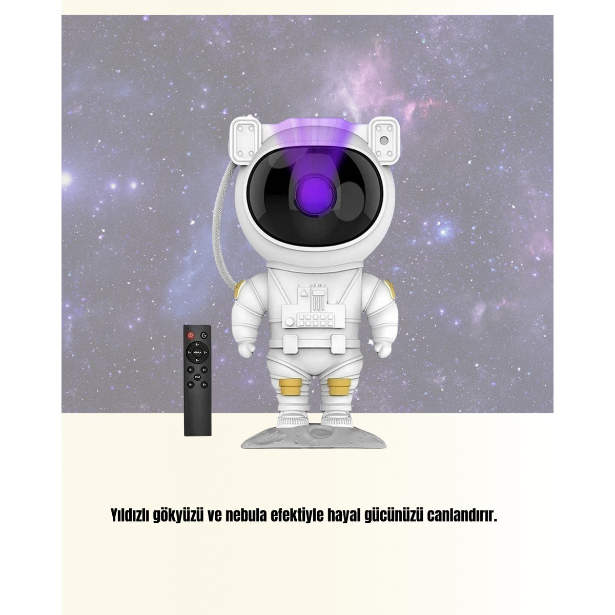 Astronot Projeksiyon Lambası, görsel efektleri ve çok yönlü özellikleriyle evde, ofiste veya etkinliklerde atmosferi tamamen değiştiren özel bir aydınlatma ürünüdür. Yüksek kaliteli nebula, yıldız ve ay projeksiyonları sayesinde duvarlarınıza ve tavanınıza adeta uzayın derinliklerini yansıtır. Hız ve parlaklık ayarları ile istediğiniz yoğunlukta ışık sağlayabilir, hem tek tek hem de birlikte kullanarak farklı kombinasyonlar oluşturabilirsiniz. Bluetooth bağlantısı ile telefonunuzdan ya da tabletinizden müzik çalabilir, dahili kuş cıvıltısı, dalga sesi, şömine ateşi ve uyku müzikleri ile rahatlatıcı bir ortam yaratabilirsiniz. İki farklı zamanlama modu (45 ve 90 dakika) ile cihazı uyku öncesinde güvenle kullanabilir, otomatik kapanma özelliği sayesinde enerji tasarrufu sağlayabilirsiniz. Ayarlanabilir projeksiyon açısı, ışığı tam istediğiniz alana yönlendirmenizi sağlar. USB güç kaynağı ile çalışır ve ABS + PC + PVC + TPE malzemelerden üretilmiştir. Hem modern hem de eğlenceli tasarımı sayesinde çocuk odaları, yatak odaları, meditasyon alanları ve parti ortamları için uygundur.