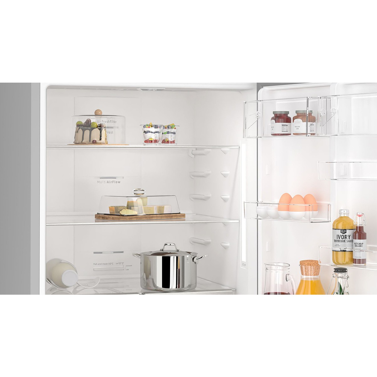 Derin dondurucu sıcaklık göstergesi, Dondurucu uyarı fonksiyonu, Ekonomi modu / Tatil modu, Kapı açık kaldığında uyarı sinyali, Soğutucu sıcaklık göstergesi, Süper dondurma fonksiyonu, Süper soğutma fonksiyonu