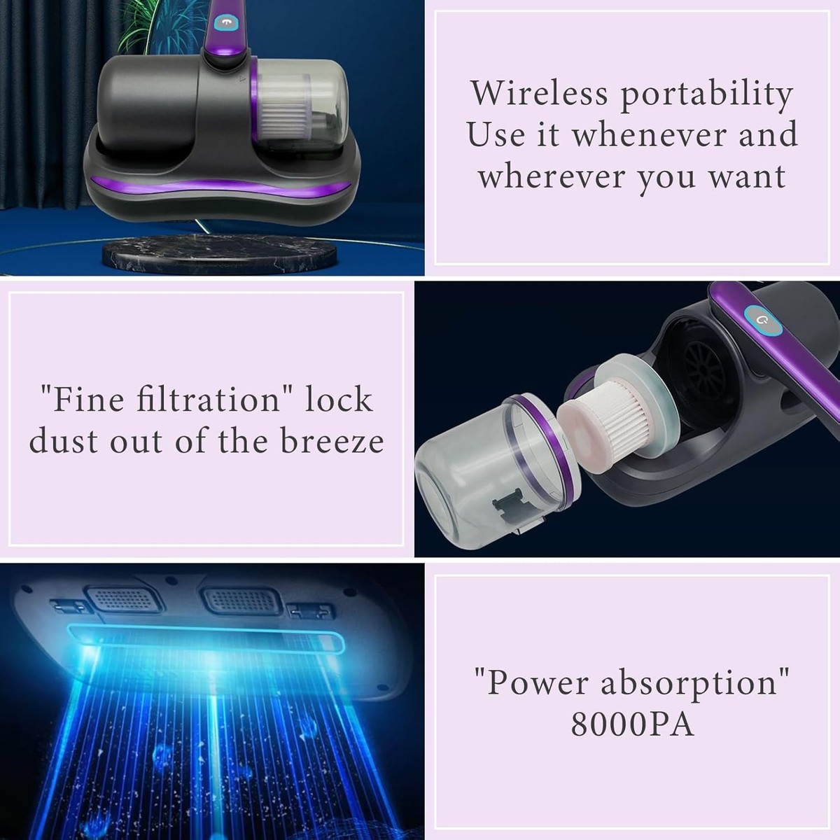 • Güçlü emiş gücü: Bu taşınabilir yatak elektrikli süpürge 8000 Pa güçlü emiş gücüne sahiptir, bu da yatağınızdaki inatçı toz ve kiri temizlemek için etkili bir araçtır. Bu sayede yatak süpürgesi hayvan tüylerini ve cilt pullarını sorunsuz bir şekilde emer. Yatak, halı, yastık, paspas, futon, battaniye ve mobilyalar için uygundur.