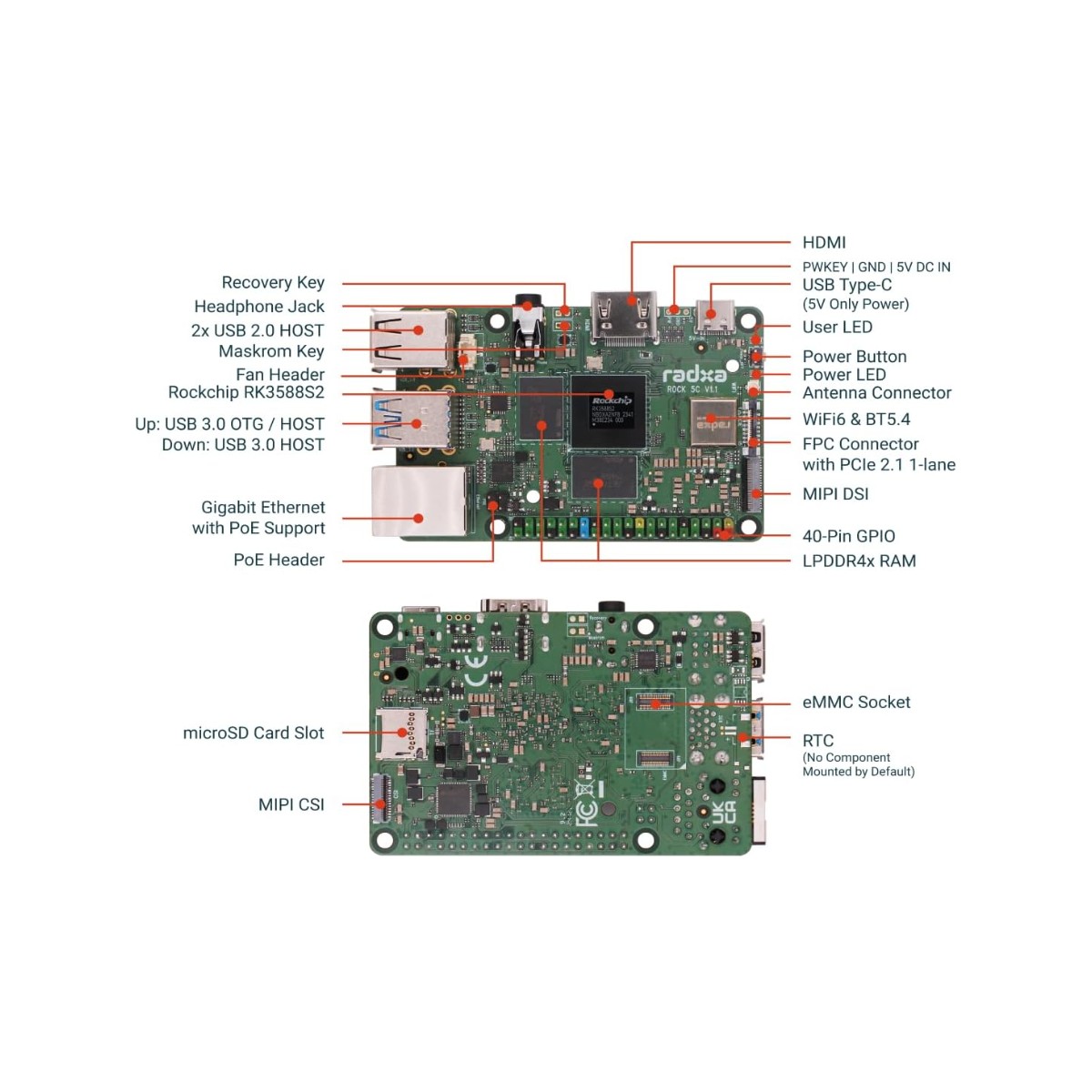 Radxa ROCK 5C – 16GB RAM – RK3588S2 – Wi-Fi 6 / Bluetooth 5.4 – Geliştirme Kartı