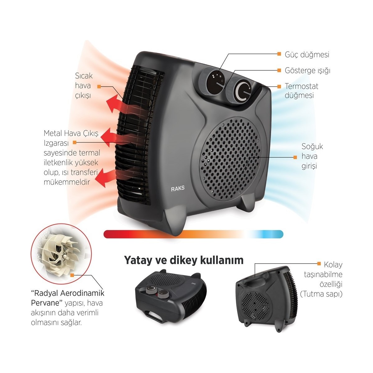 RAKS PF 20 BLACK Elektrikli Fanlı Isıtıcı 2000W