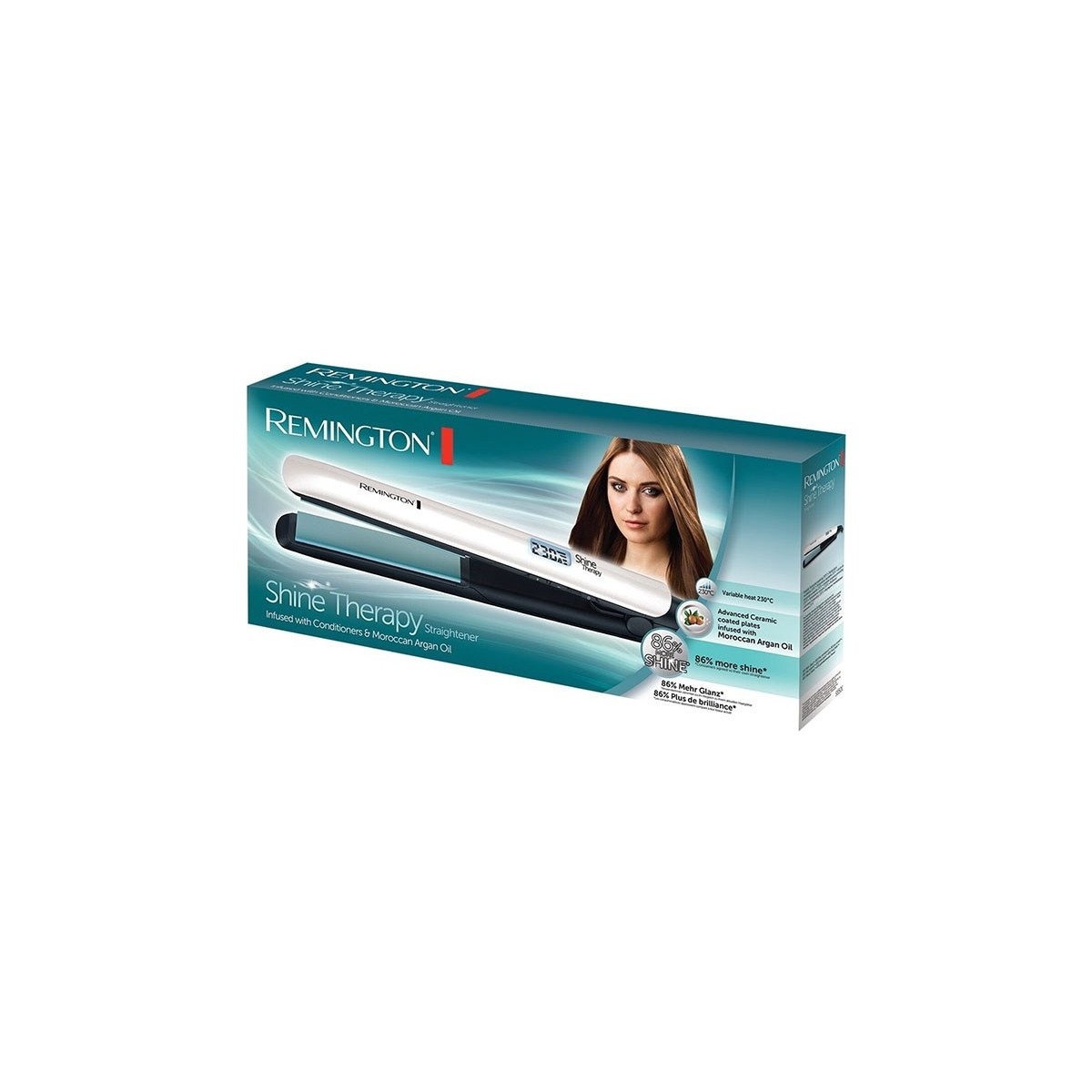 Şekli uzun süre kalıcı ipek gibi yumuşak saçlara kavuşmak artık çok kolay! Argan yağı ve E vitamini katılmış seramik kaplaması ile favori saç ürünlerinizden biri olmaya aday Remington S8500 Shine Therapy Argan Yağlı Saç Düzleştirici, hem saçlarınıza parlaklık ve ışıltı verir hem de beslenmesini sağlar. Oldukça hafif bir ürün olduğundan düzleştirme işlemini elleriniz ve bileğiniz ağrımadan kolayca yapabilirsiniz. Yüksek performans sağlayan seramik ısıtıcıları sayesinde saçlarınızda kökten uca yalnızca iki geçişte bile düzleştirme özelliğini fark edeceksiniz.
