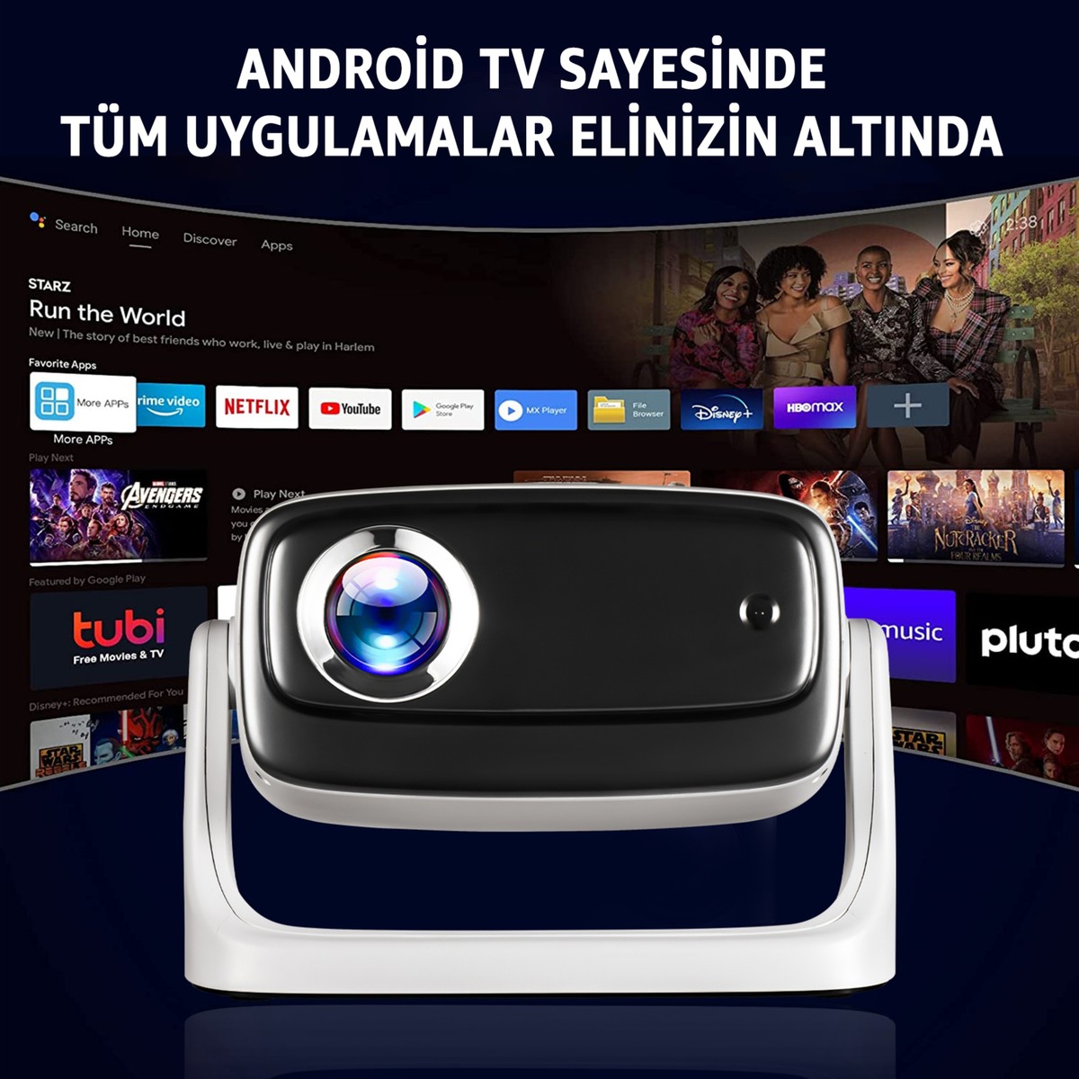 Robeve Lensun 4K Full Hd New 15 LED Projeksiyon Cihazı – 200 Inç, Wi-Fi, Bluetooth 5.2, Hdmı/usb/playstore, Android Tv, Otomatik Görüntü Düzeltme, Dahili Hoparlör