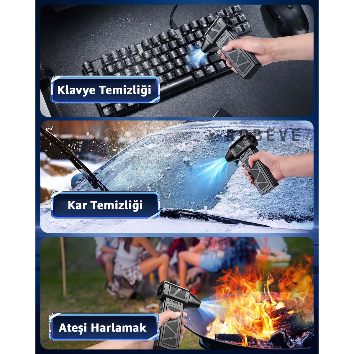 Robeve Süper Güçlü Üfleyici Şarjlı Fan Turbo Fan 130000 Rpm Güçlü Fan Vantilatör Üfleyici Süper Turbo Fan Yüksek Hızlı Fırçasız Motor Mini Jet Üfleyici