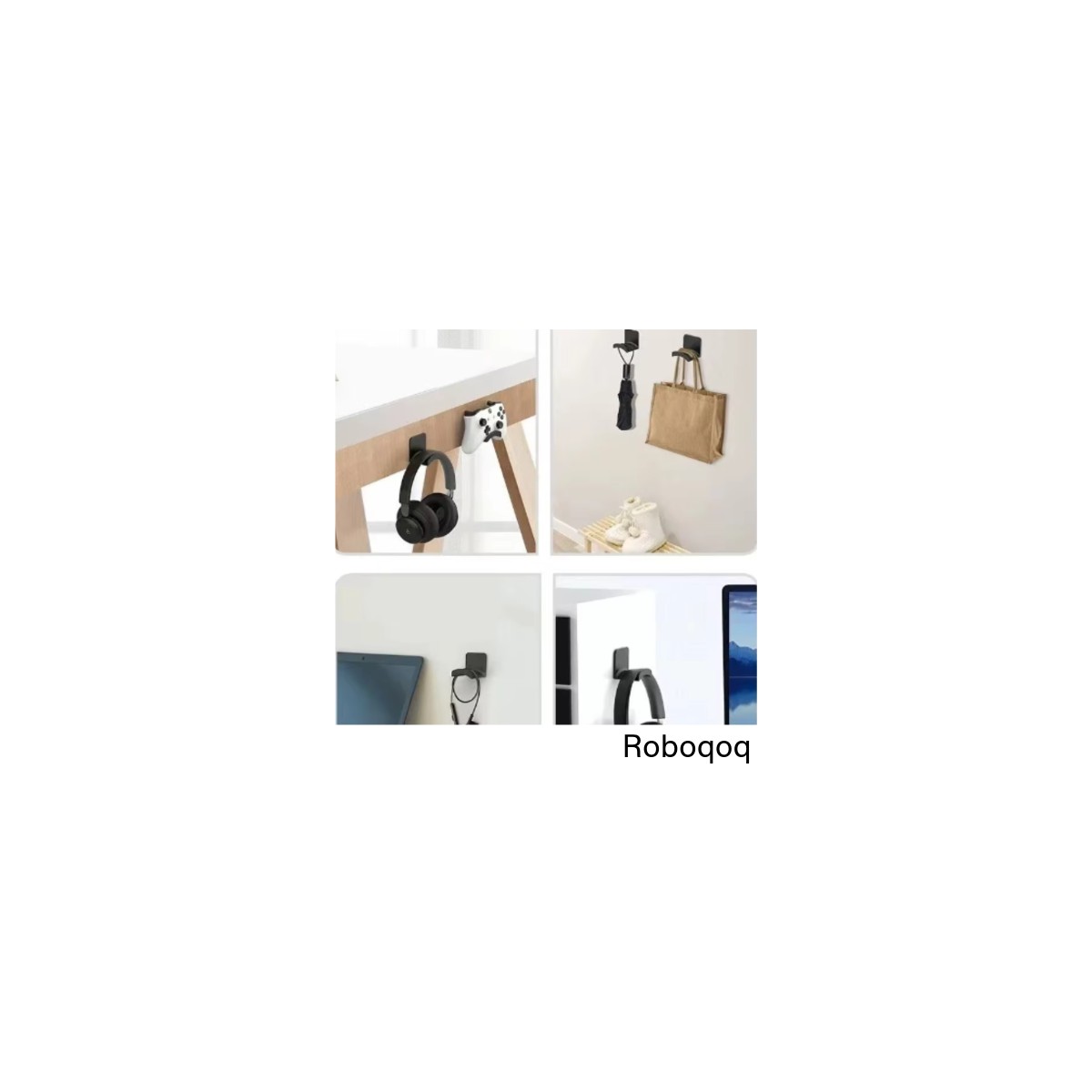 Roboqoq Asılabilir Kulaklık Standı 3 ADET Kulaklık Tutucu Masa Duvar Bantlı Ps4 Ps5 XBox Uyumlu Siyah