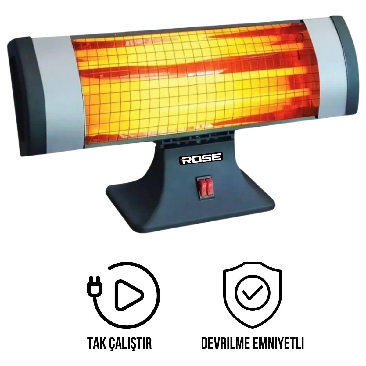 Rose Fervor 1800 Watt Devrilme Emniyetli Tak Çalıştır Masa Altı Elektrikli Soba