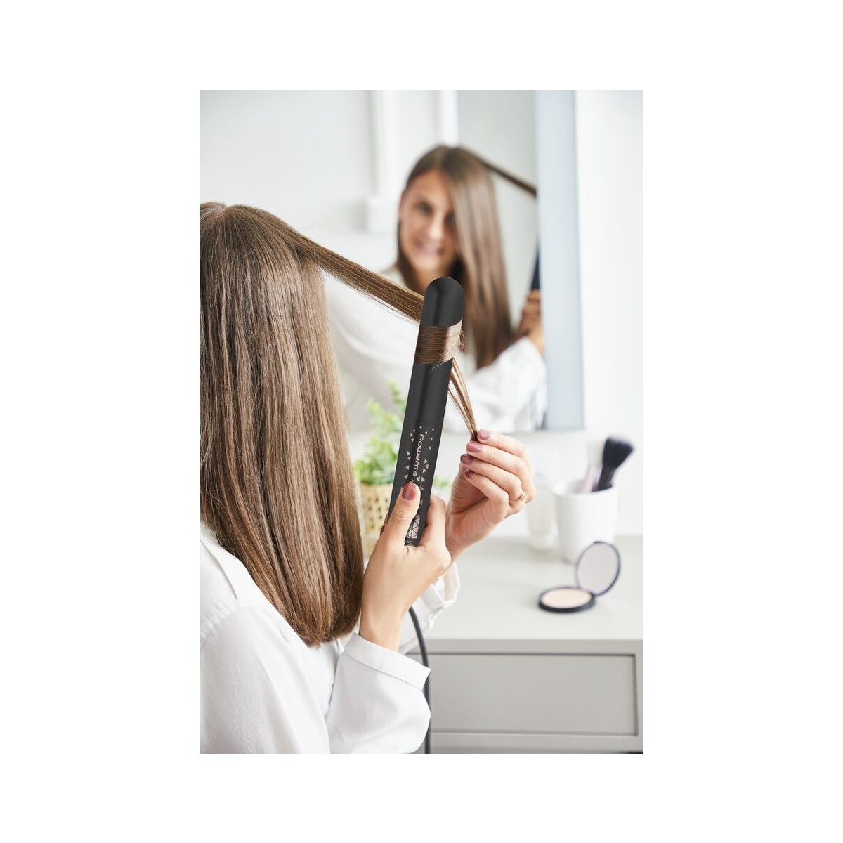 Bu güvenilir saç düzleştirici, daha hızlı ve verimli şekillendirme seansları için 200 °C’ye kadar sıcaklıklara ulaşabilir.