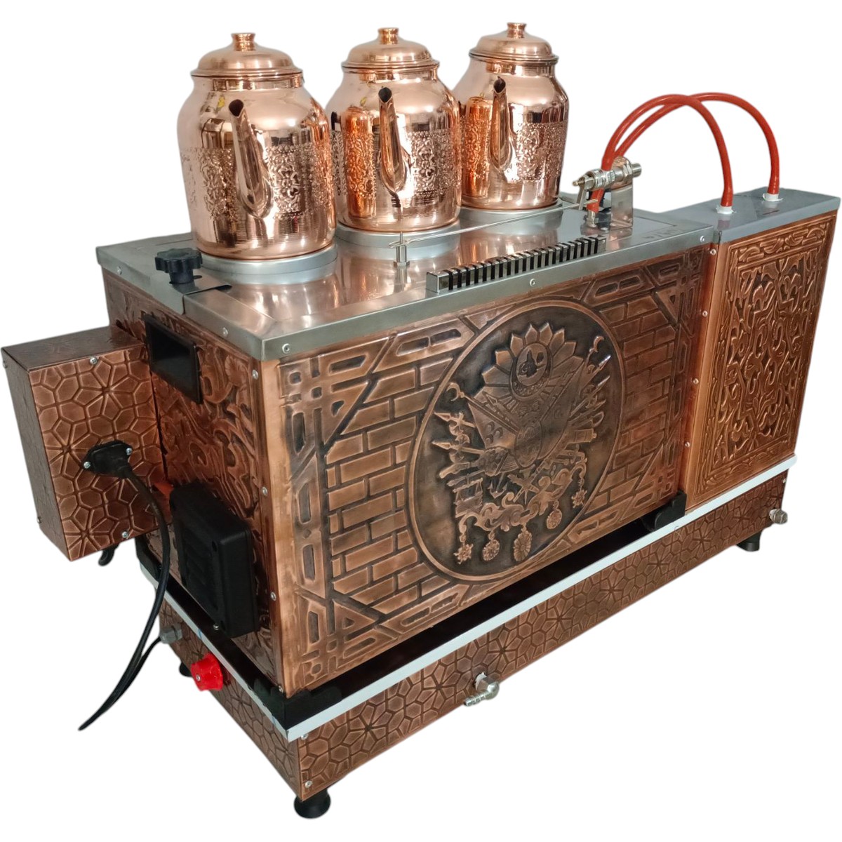 3 gözlü ( 3 demlikli ) Tam Otomatik Elektrikli ve Tüplü Bakır Çay Kazanı.