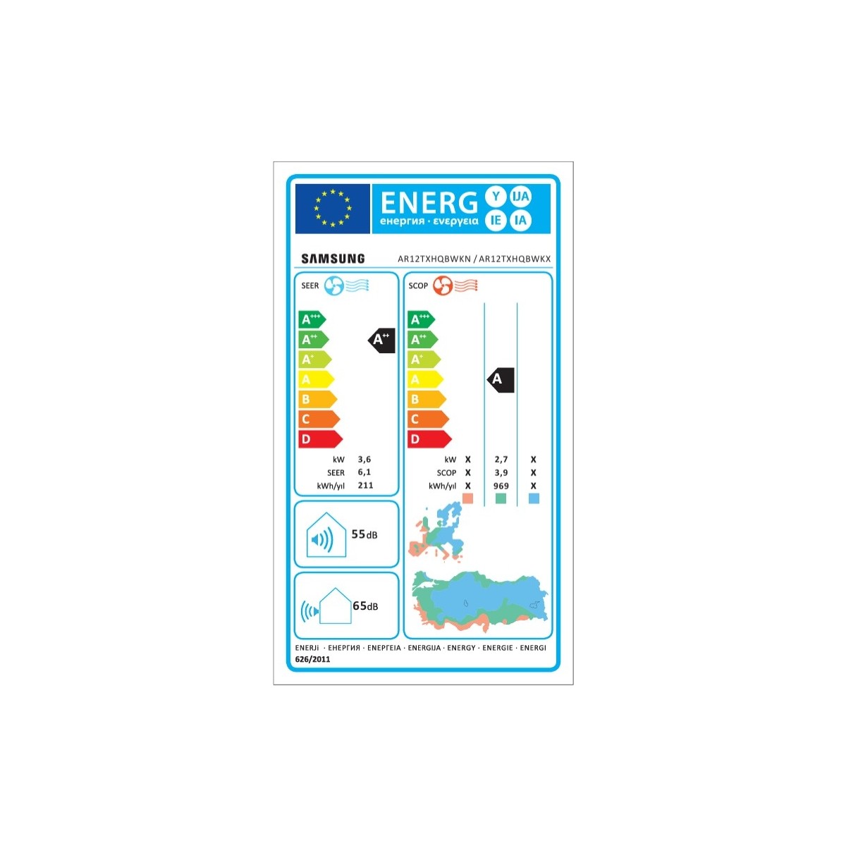 - Energy Efficiency Class for heating in ‘Warmer’ heating season (Grade)A+