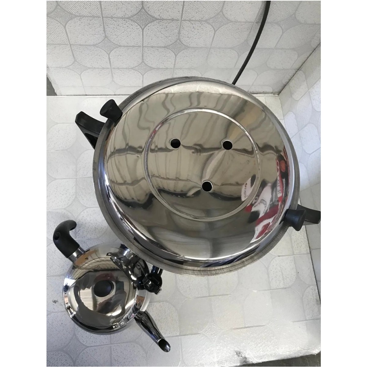 Kapasite: Yaklaşık 70 bardak çay servisi kapasitesi Malzeme: Yüksek kaliteli paslanmaz çelik gövde ve iç hazne Enerji: Elektrikli kullanım – enerji tasarruflu rezistans sistemi Güvenlik: Otomatik ısı kontrol termostatı ile güvenli kullanım Kullanım Alanları: Ofisler, iş yerleri, atölyeler, kafeteryalar, etkinlik alanları, cami, okul ve benzeri kalabalık ortamlar için ideal