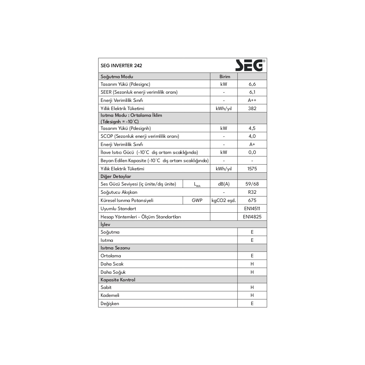 Seg Inverter 242 Klıma