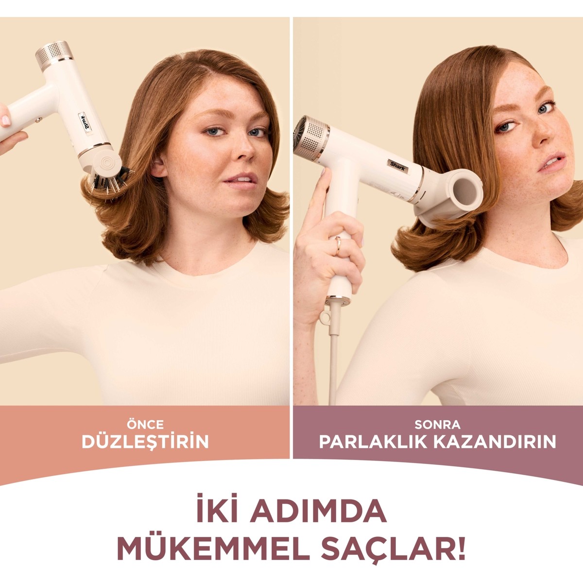 Ultra yüksek hızlarda saçınızı kuruturken şekillendirir, ısı hasarından korur ve ışıltılı, ipeksi bir görünüm kazandırır. Kendi evinizde kuaförden çıkmış gibi mükemmel görünen stillere sahip olabilirsiniz.