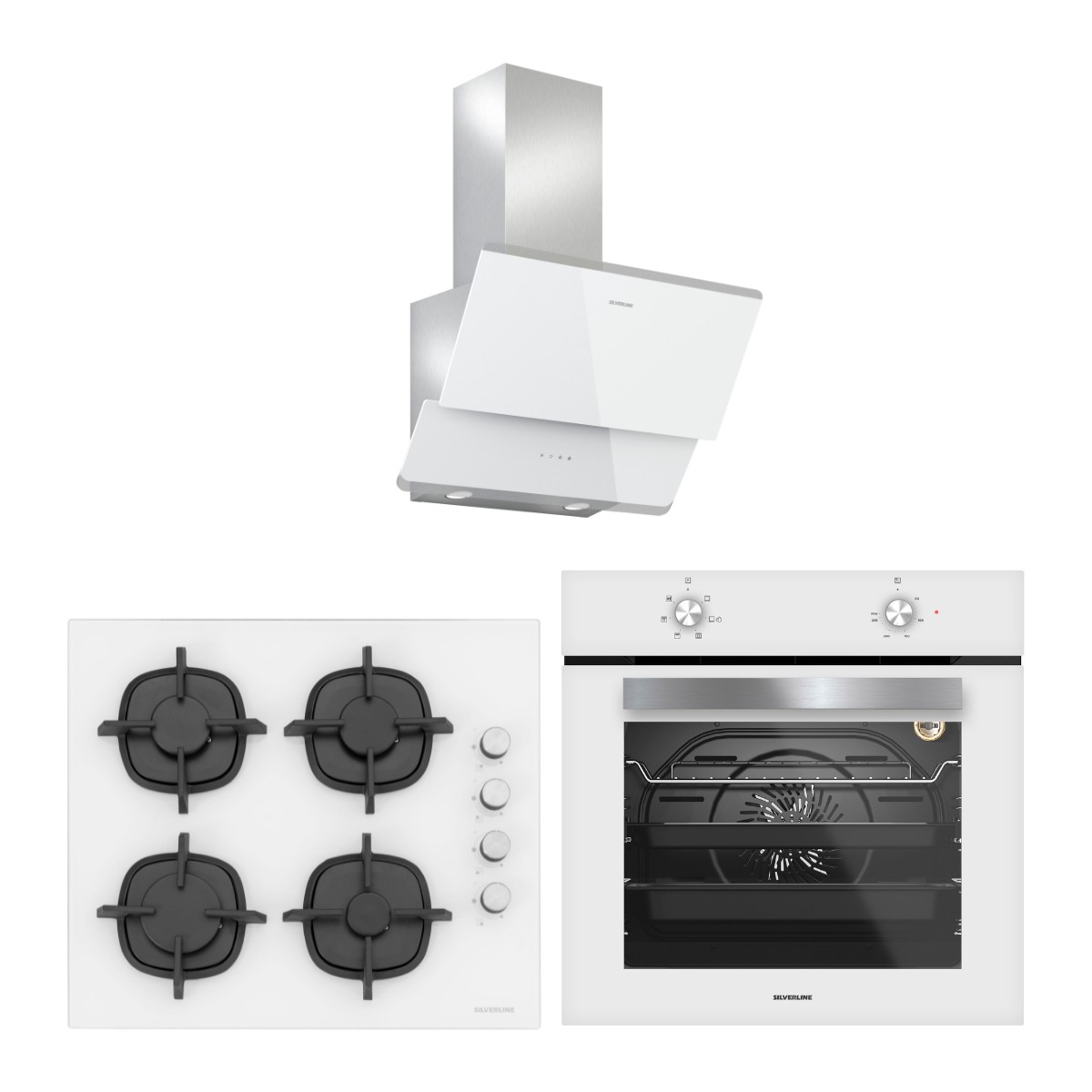 Silverline Beyaz Cam Ankastre Set 3490 Oslo Beyaz Davlumbaz – CS5343W01 Ocak – BO65E1W01 Fırın