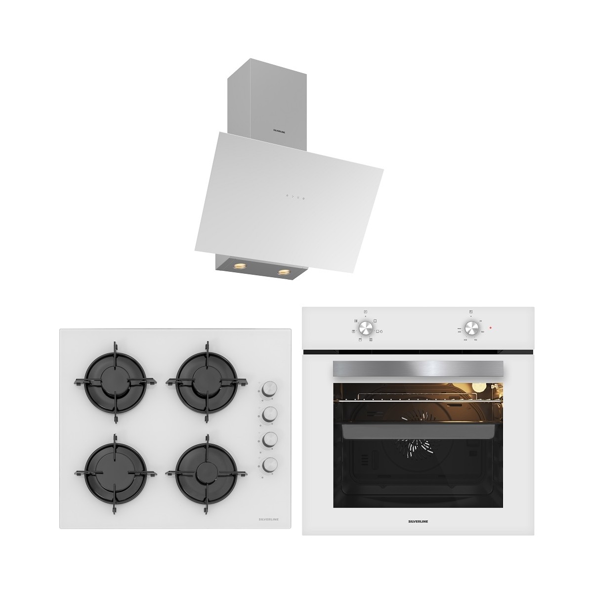 Silverline Beyaz Cam Ankastre Set ;
