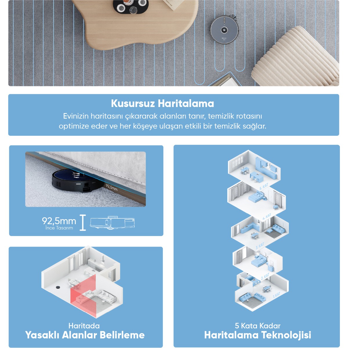 - 46Wh Batarya Gücü İle 130dk’ya Kadar Temizlik