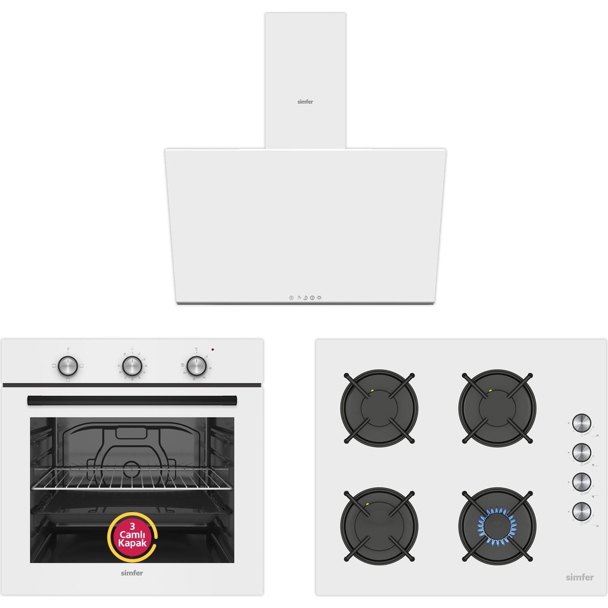 Simfer 4 Fonksiyon Trend Mekanik Beyaz Cam 3’lü Ankastre Set (Fırın + Ocak + Davlumbaz)