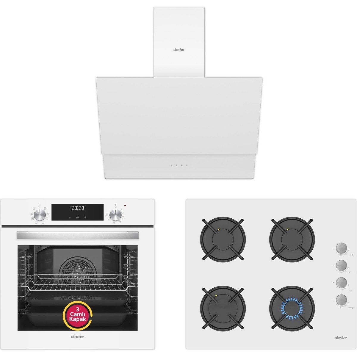 Simfer 9 Fonksiyon Qs Dijital Beyaz Ankastre Set (8209 Fırın + 3507 Ocak + 8704 Davlumbaz)