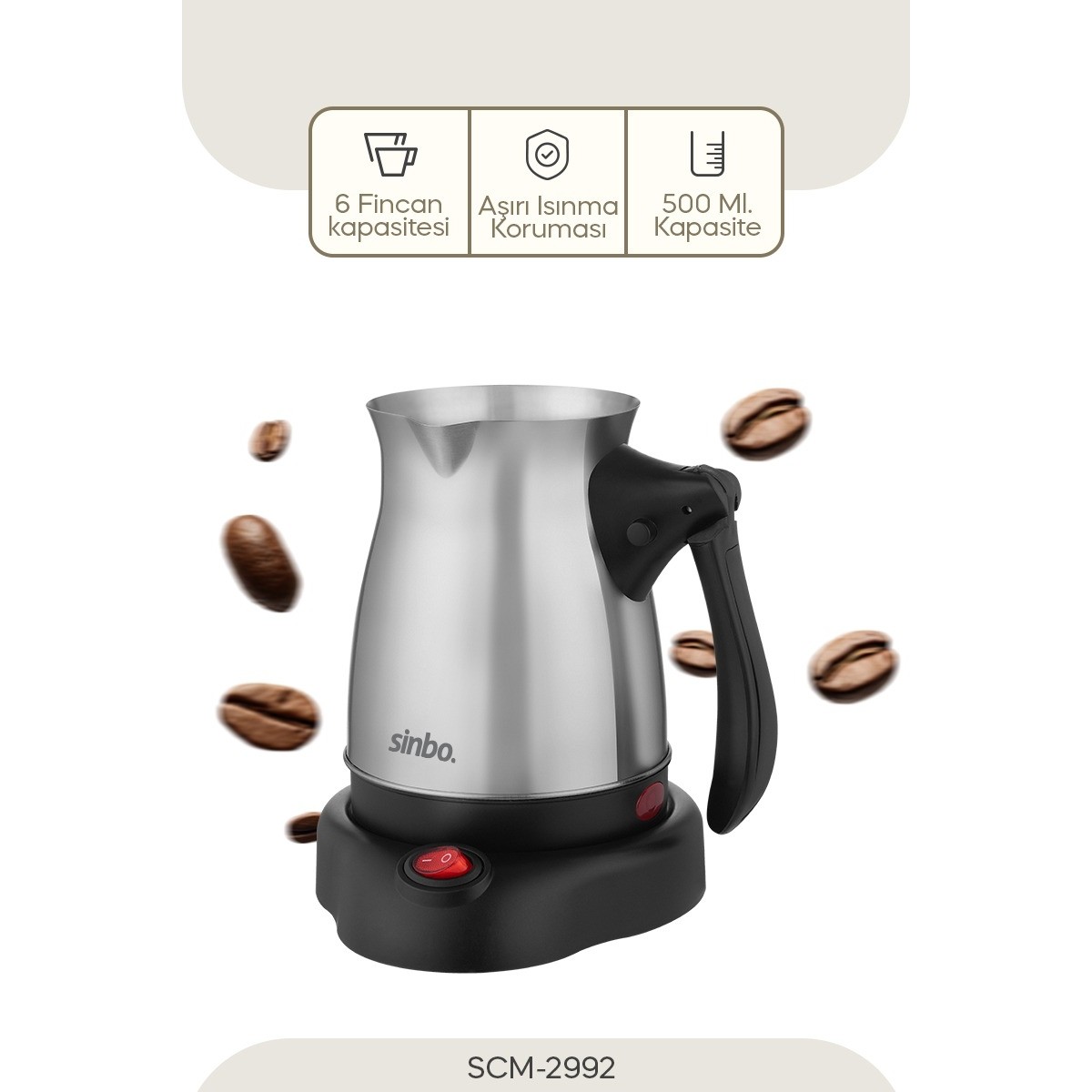 Sinbo 2992 Sinbo Elektrikli Çelik Cezve Türk Kahvesi Makinesi (Katlanabilir Kulplu)