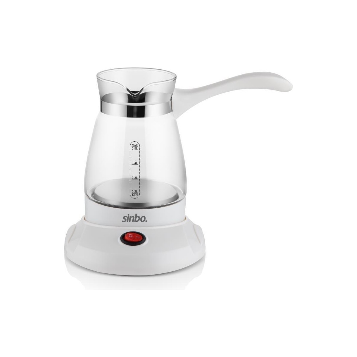 Sinbo Elektrikli Cam Cezve – 500 ml, 5 Fincan Kapasitesi, Hızlı Kaynatma Özelliği, Isıya Dayanıklı, Şık Beyaz Tasarım