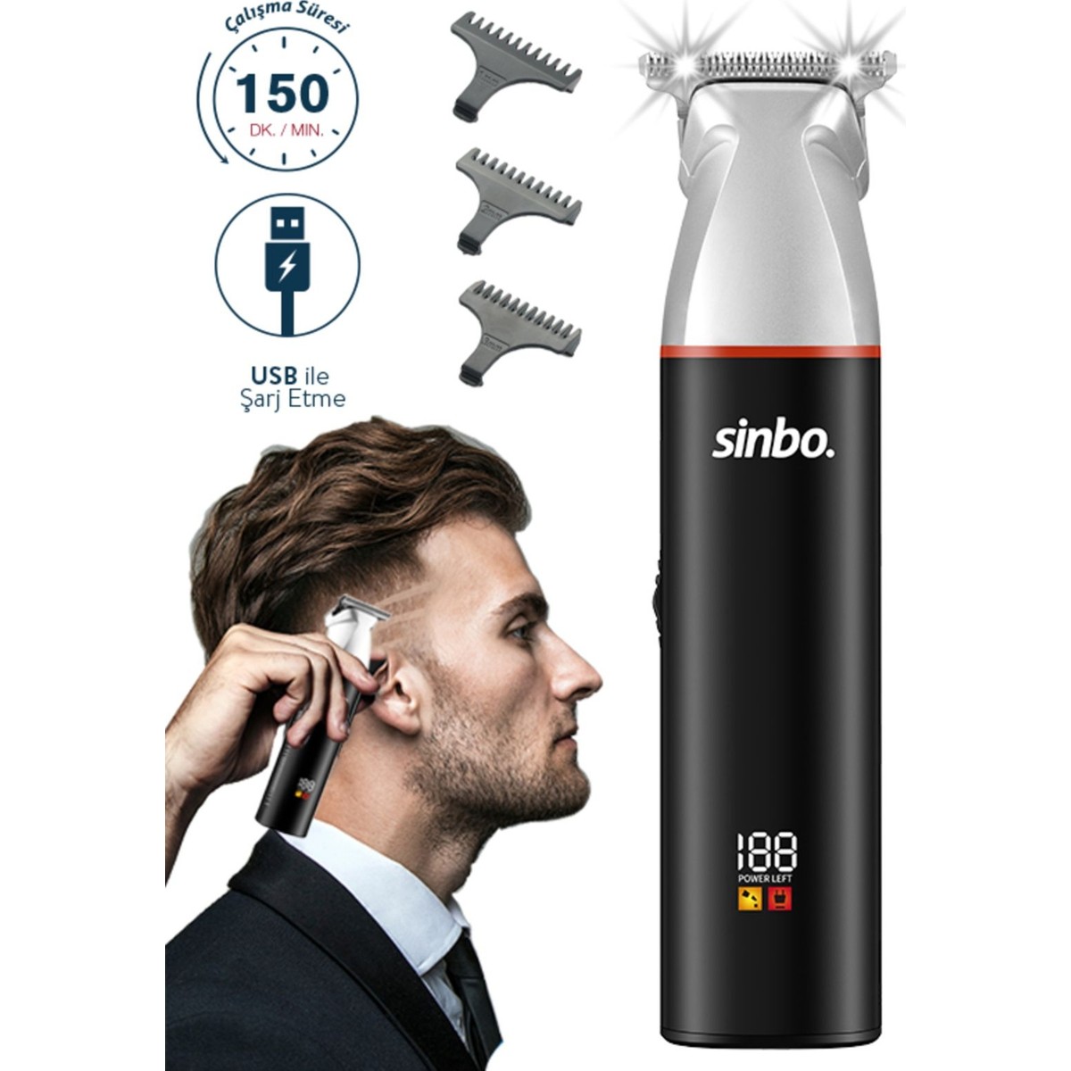 Sinbo Saç ve Sakal Tıraş Makinesi Hassas Çelik Bıçak LCD Ekran Şarjlı Siyah Hızlı Şarj Özellikli