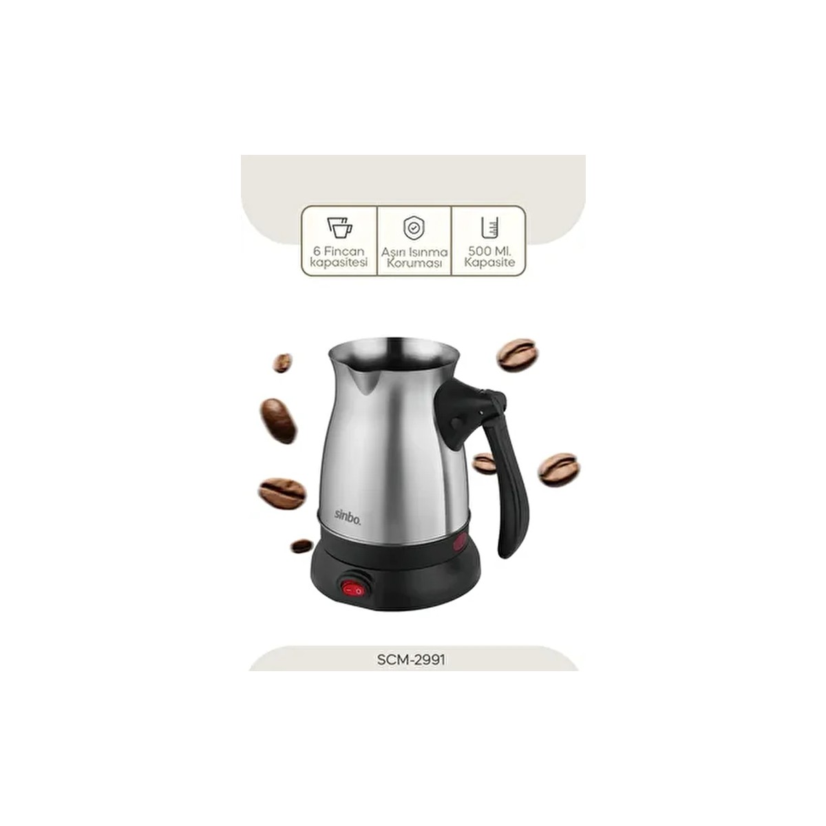 Sinbo SCM-2991 Türk Kahvesi Makinesi – 6 Fincan Kapasite, Kablosuz ve Güvenli Kullanım
