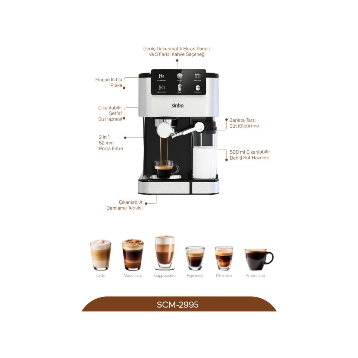 Sinbo Scm 2995 -Kapsül Kahve Aparatlı Inox Espresso Makinesi