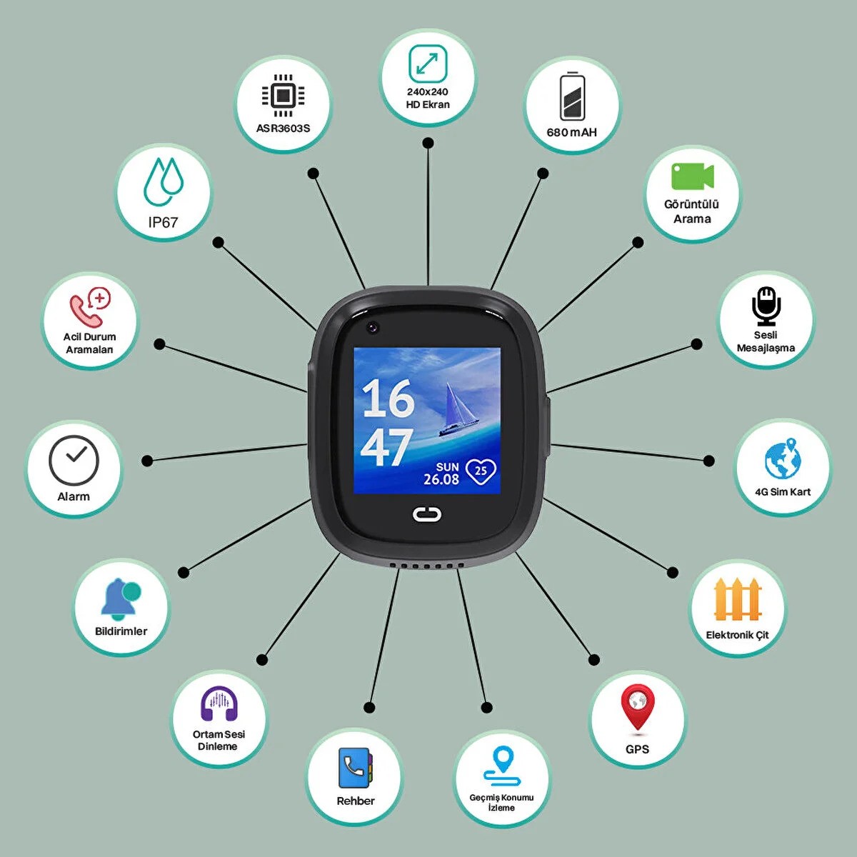 Slazenger Akıllı Çocuk Saati 4.5g S Im Kart Destekli Görüntülü Görüşme Özelliği