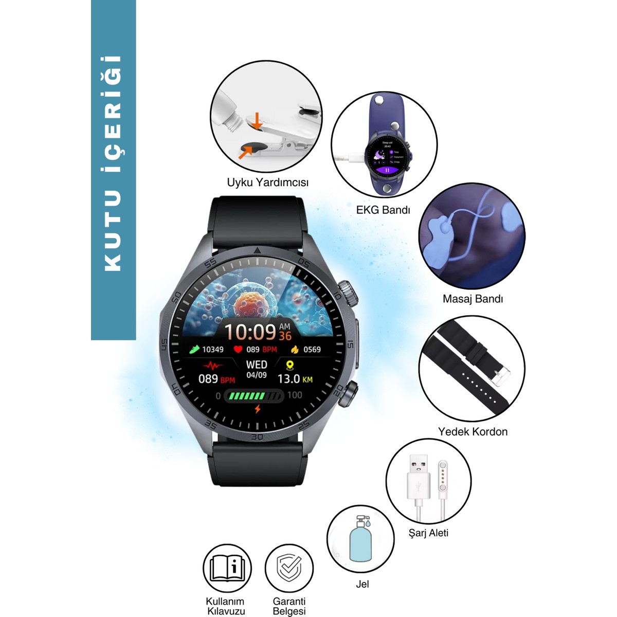 Spovan Cardio 3 Ekg Tansiyon Vücut Analiz Şeker Yapay Zeka Türkçe Akıllı Saat