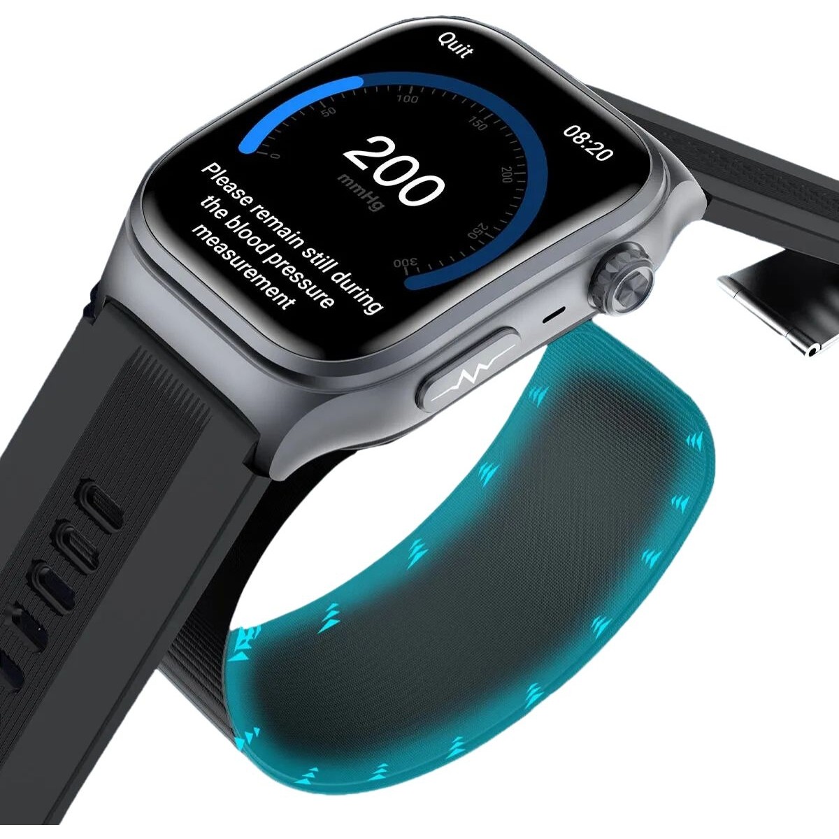 Ana Özellikler Hava pompası+hava yastığı tipi gerçek tansiyon testi, 2,06 inç AMOLED retina dokunmatik ekran, EKG nano taban, tansiyon ses yayını, BT Sesli telefon kapasitesi, TPU ultra ince konforlu hava yastığı (çıkarılabilir), EKG elektrokardiyogramı, Yapay Zeka Health AI, şeker, ürik asit, kan lipidi, vücut özellikleri, kan oksijeni, uyku izleme, nefes eğitimi, NFC erişim kontrolü ve 530mAh uzun pil ömrü.