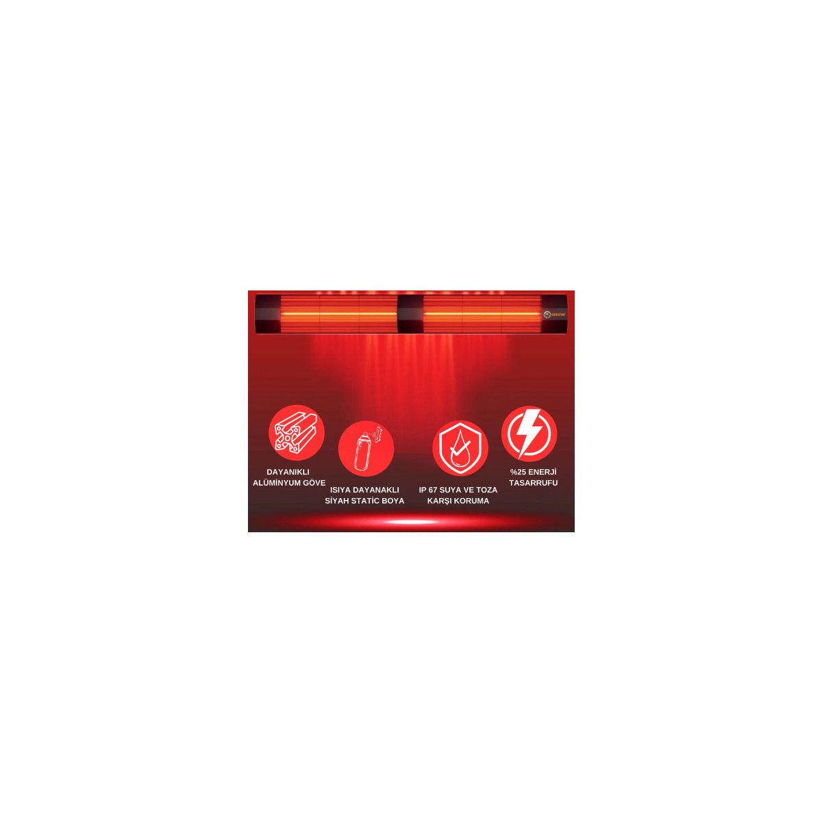- YATAY VE DİKEY KONUMDA ÇALIŞMA ÖZELLİĞİ RÜZGARDAN VE HAVA AKIMINDAN ETKİLENMEYEN ÖZEL KIRMIZI RENK REZİSTANS 4000 WATT ISITMA GÜCÜ %25 enerji tassaruflu, yatay ve dikey konumda çalışma özelliği, woltaj: 220-240v, heartz: 50-60hz, güç: 4000w, ısıtma alanı: 20-28 m², 2 yıl garantili özel kırmızı renk ısıtıcı, yatay ve dikey konumda çalışma özelliği açık ve kapalı alanları (cafe, spor salonu, restaurant, otel, bahçe, kışlık, ev, ofis, vb) daha az maliyetle ısıtın.