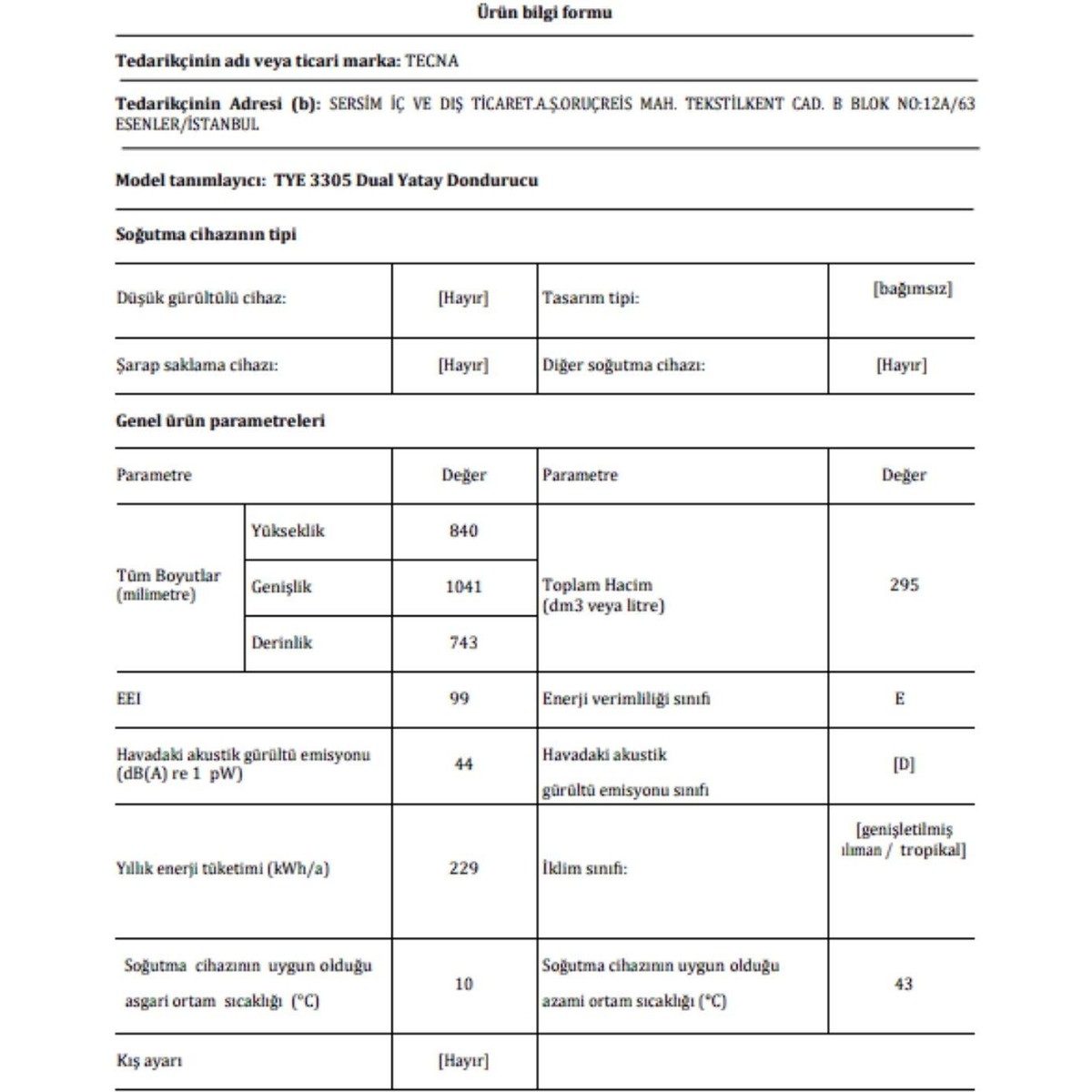 Tecna CF3320 Tye 3305 Dual Yatay Derin Dondurucu 305 L