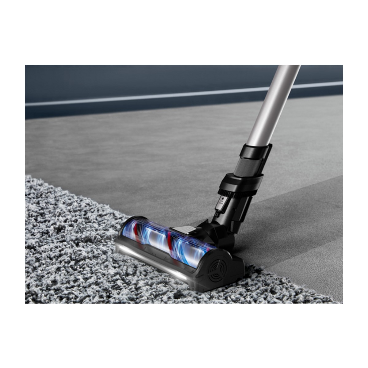 Yüksek güç: Zeminlerin ve halıların derinlemesine süpürülmesini sağlayan modern bir elektrikli fırçayla donatılmış, 150 Hava Watt’lık emiş gücüne sahip kablosuz elektrikli süpürge.