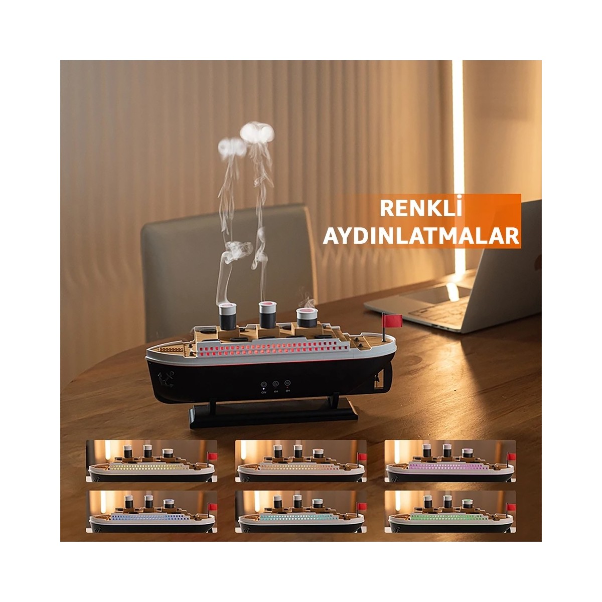 Titanic Aromaterapi Hava Nemlendirici Gemi Buhar Makinesi LED Işıklı Aromaterapi Difüzörü