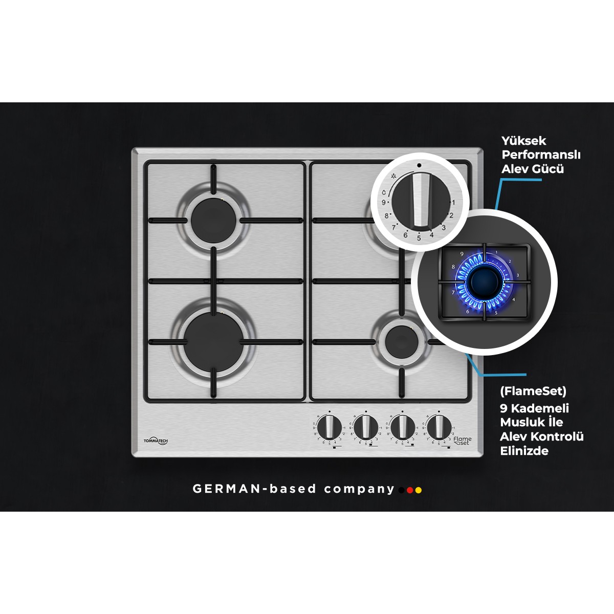 Tommatech TAO6006IM Ankastre Gazlı Ocak 60 cm Inox Metal