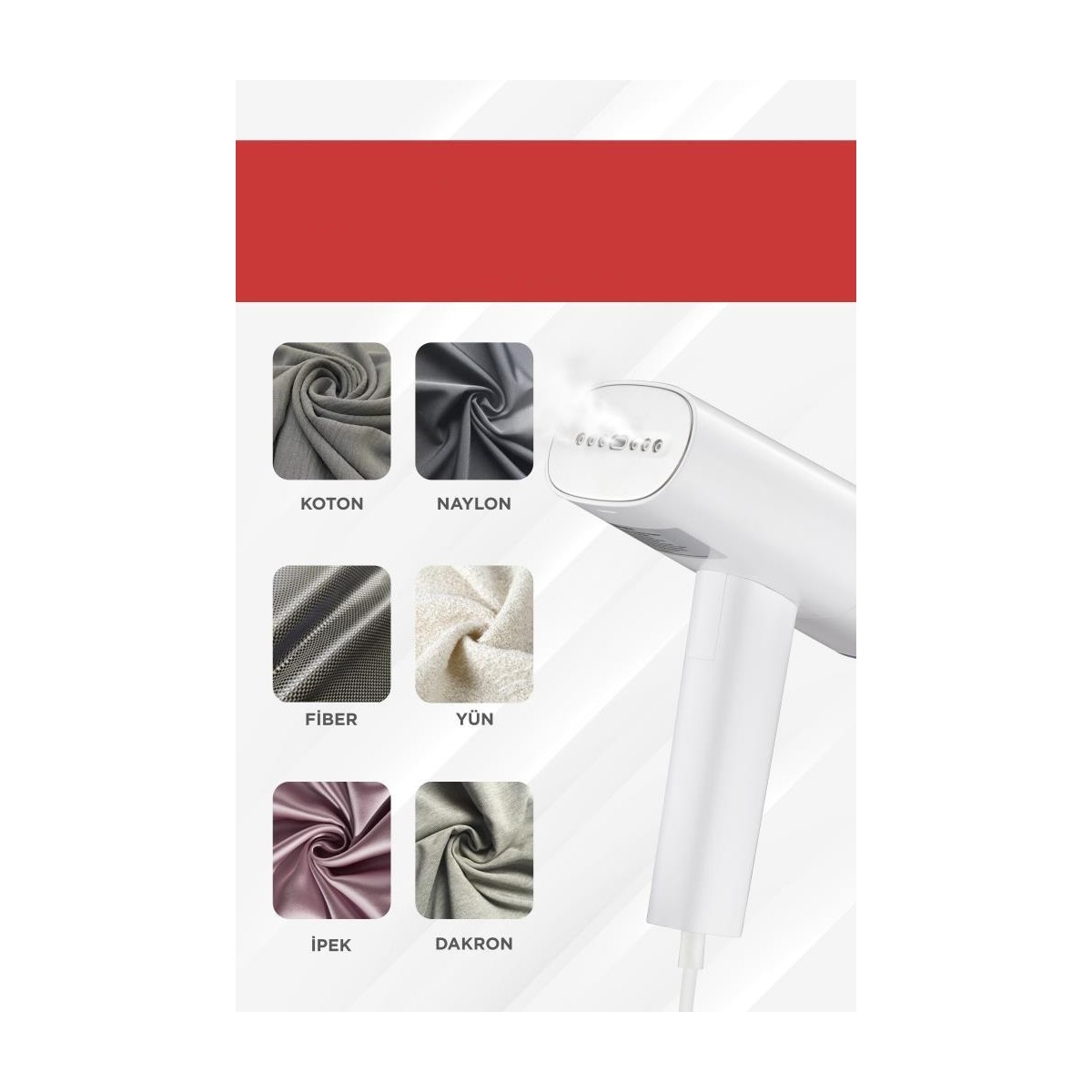 Torima Taşınabilir Dikey Buharlı Ütü, ipek, pamuklu, keten, yün ve polyester gibi farklı kumaş türleri için kullanılabilir. Buharlı ütüleme, hassas kumaşlara zarar vermeden kırışıklıkları giderir ve giysilerinizi yumuşatır.