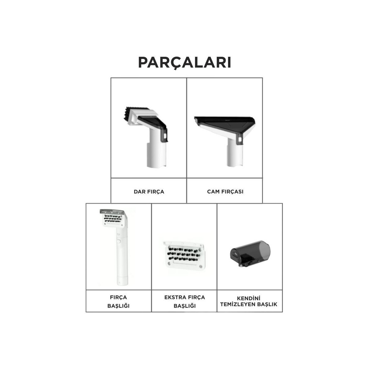 5 adet yedek başlık: farklı yüzey ve leke tipleri için özel olarak tasarlanmış 5 farklı başlık ile her türlü temizlik ihtiyacınıza pratik çözümler sunar.